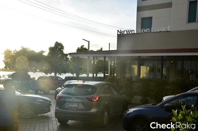 ระหว่างทางจากก็อกกะเร็กสู่เมาะลำไยนั้น ถนนค่อนข้างแย่ เป็นเลนสวนที่ไม่มีไหล่ทางและมักมีรถใหญ่สวนมาเป็นระยะ ได้ทราบว่าเส้นทางนี้คือ เส้นทางหลักทางเดียวที่ไป-มาระหว่าง ย่างกุ้งกับเมียวดี การขับบนถนนเส้นนี้ค่อนข้างลำบาก เพราะป้ายบอกทางราชการไม่มีให้เห็นเลย นานๆ จะเห็นป้ายบอกชื่อเมืองพร้อมระยะทางเป็นภาษาพม่า โชคดีที่ทีมงานผู้จัดได้มาดูทางไว้ก่อนแล้ว ทำให้การเดินทางเป็นไปอย่างรวบรัดและถูกต้อง ถ้าใครคิดว่าอยากเดินทางด้วยรถส่วนตัวเข้ามาขับเที่ยวในพม่าบ้าง ผู้เขียนได้ทราบว่าเป็นไปได้ยากมาก โดยเฉพาะการข้ามแดนด้วยรถเข้ามาพักหลายวัน เพราะต้องขอวีซ่า (ถ้านั่งเครื่องบินไม่ต้อง) และทำเรื่องผ่านหน่วยงานราชการ ขบวนฯ มาถึงโรงแรมชื่อ Ngwe Moe ราวหกโมงครึ่ง รวมระยะทางราว 411 กม. บริเวณโรงแรมอยู่ใกล้แม่น้ำสาละวิน บรรยากาศรอบโรงแรมดูเป็นพื้นที่ตากอากาศ แต่เงียบสงบมากผู้คนที่มาพักเท่าที่เห็นเป็นคนพม่าเองอาจมากจากเมืองอื่นและก็มีญี่ปุ่นบ้าง แต่ฝรั่งไม่มีให้เห็นเลยนับตั้งแต่ข้ามจากไทยมา หลังถึงโรงแรมที่พัก รับประทานอาหารเย็นเรียบร้อยก็แยกย้านพักผ่อนเพื่อเตรียมออกเดินทางกันต่อในเช้าวันรุ่งขึ้น