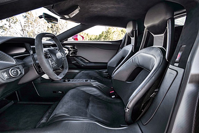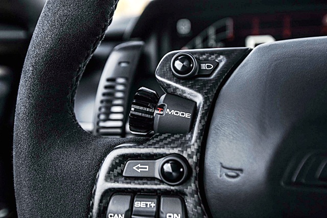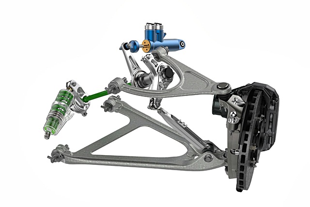 ระบบกันสะเทือนแบบไฮดรอลิก ที่จะช่วยปรับระดับความสูงของรถได้ง่ายเพียงกดปุ่มเพื่อปรับโหมดการขับขี่ ในโหมดขับขี่แบบแข่งขัน (Track Mode) ระบบกันสะเทือนจะลดระดับความสูงของรถลง 50 มิลลิเมตร หรือเกือบ 2 นิ้ว โดยโหมดนี้จะยกปีกและปิดช่องลมด้านหน้าเพื่อสร้างแรงกดที่เหมาะสมสำหรับการแข่งขันที่ผู้ขับสามารถสัมผัสได้ เมื่อระดับความสูงของรถลดลง ค่าคงที่ของสปริง การตั้งค่าวาล์วลมที่เหมาะสม และระบบอากาศพลศาสตร์ที่พร้อมปรับเปลี่ยนตลอดเวลา จะทำงานร่วมกันเพื่อสร้างรถที่เป็นทั้งรถแข่งและรถยนต์โดยสารในคันเดียว
