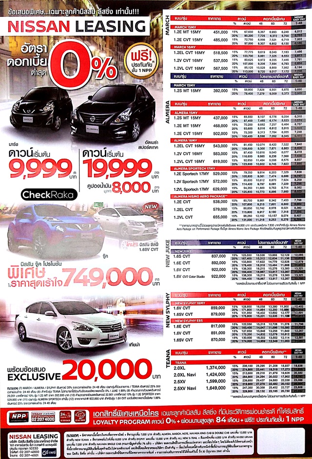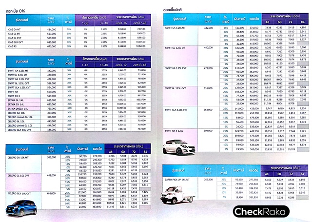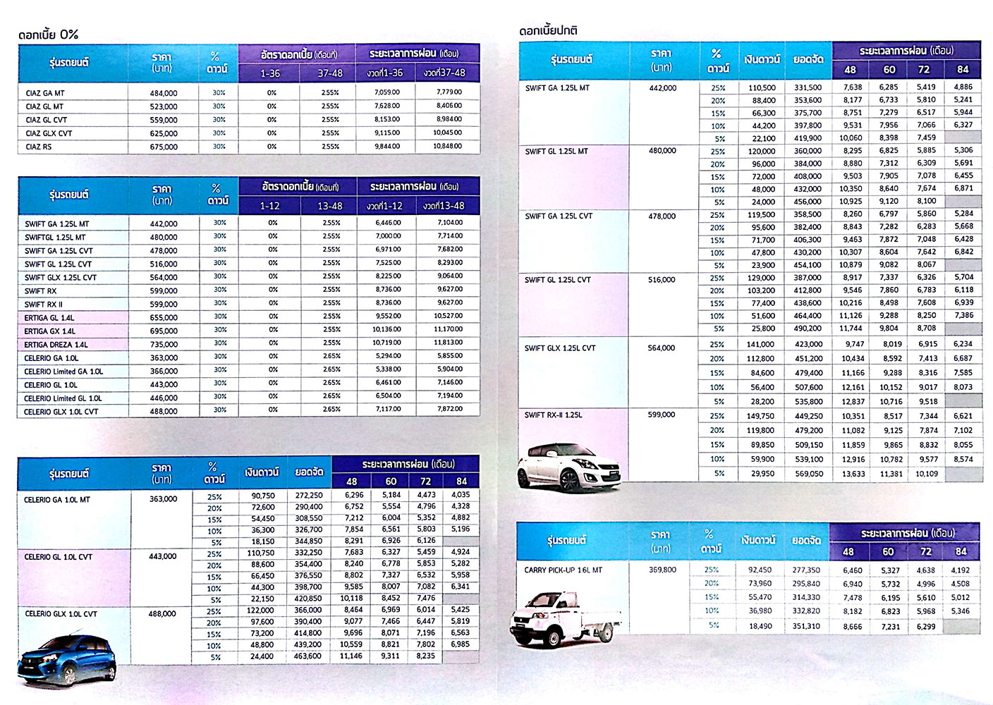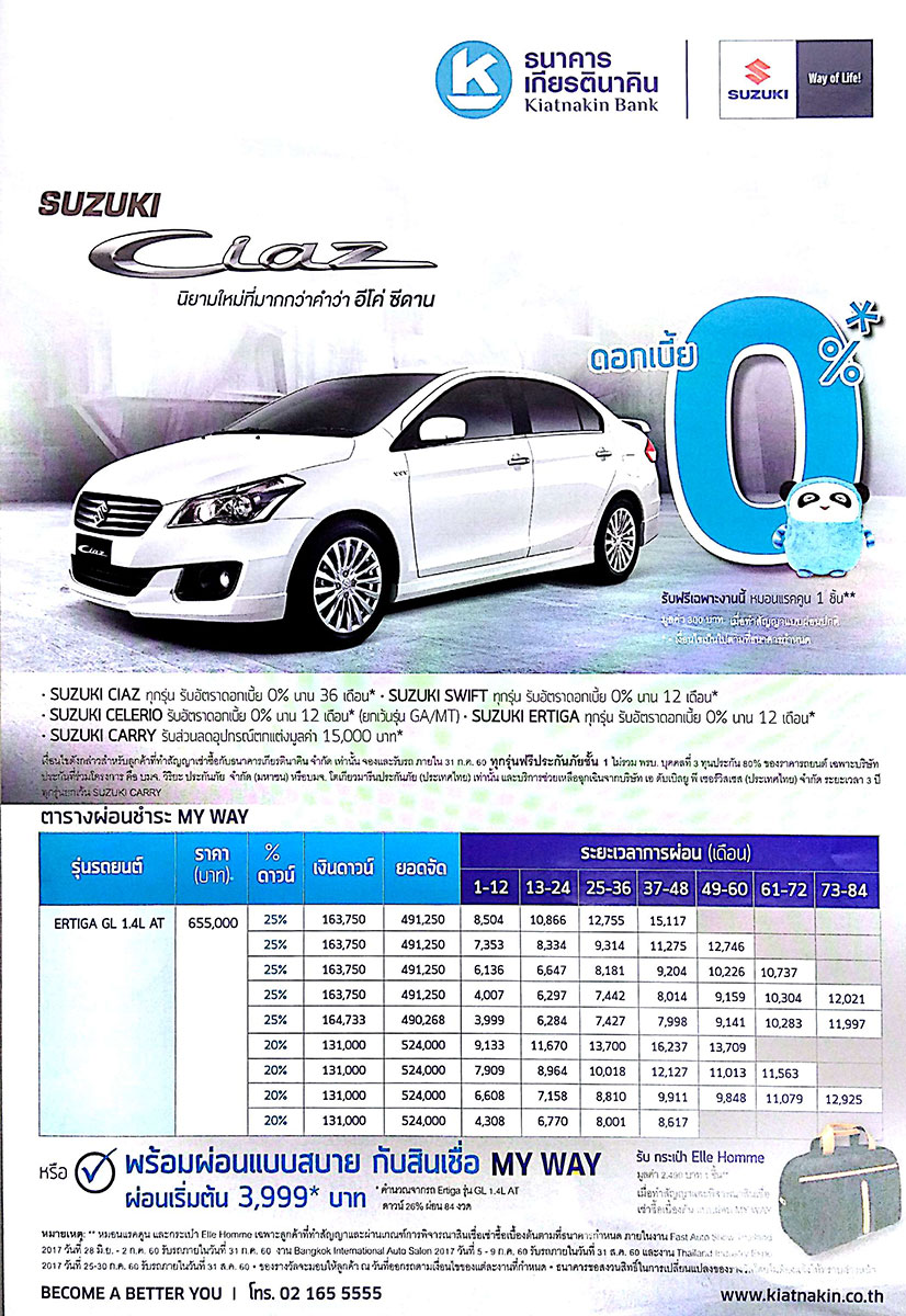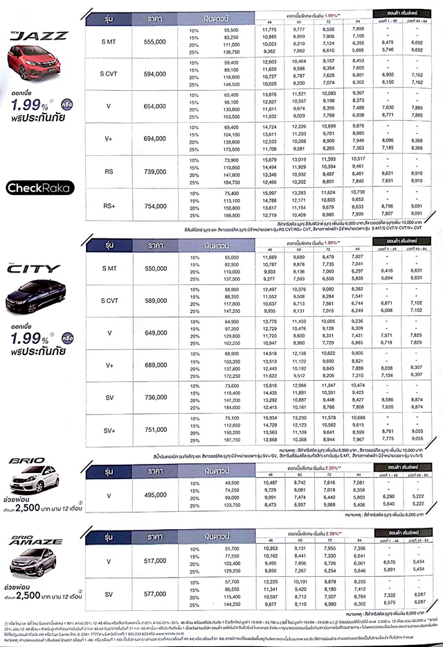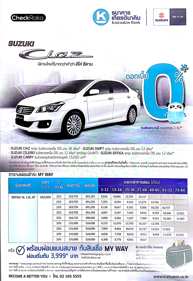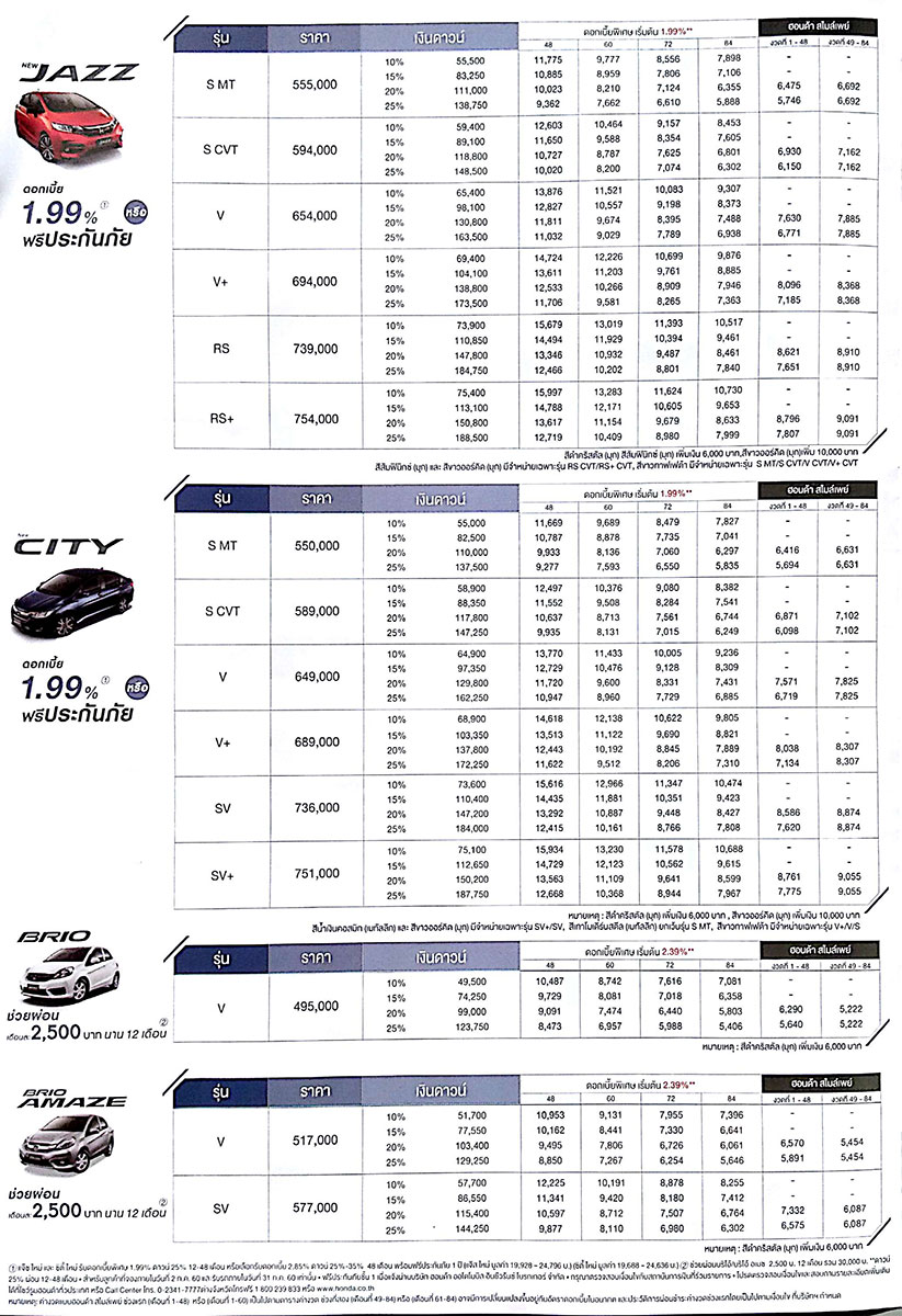 หมายเหตุ: ตารางผ่อนข้างต้นนี้ รวบรวมในวันเปิดงาน (28 มิ.ย.60) ซึ่งอาจมีบางยี่ห้อที่ยังไม่สะดวกเรื่องเอกสารตารางผ่อน ผู้ที่สนใจสามารถสอบถามรายละเอียดเพิ่มเติมได้ที่บูธของแต่ละค่ายรถยนต์ภายในงาน