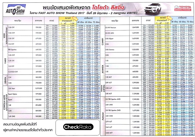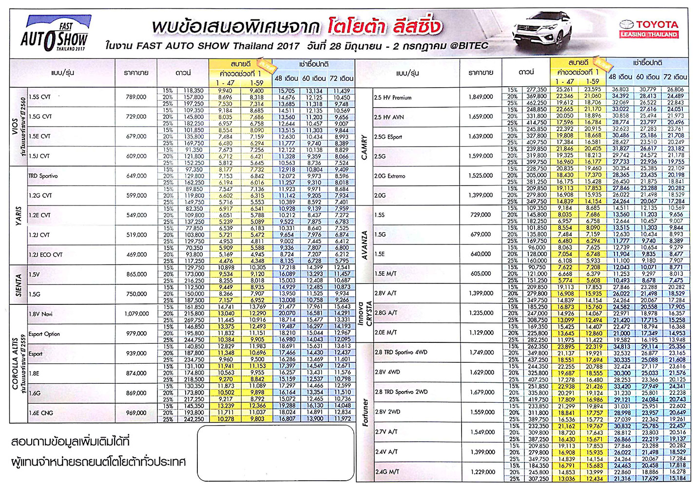 รวมตารางผ่อนรถยนต์จากงาน FAST Auto Show Thailand 2017