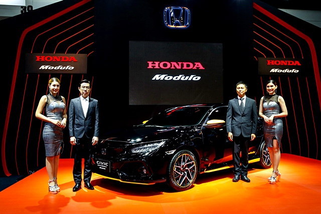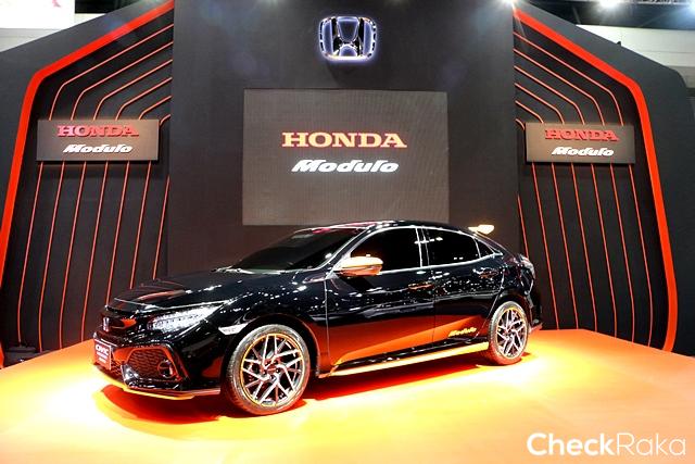 ภายในงานจัดแสดงยนตรกรรมรุ่นไฮไลท์ที่มาพร้อมอุปกรณ์ตกแต่งแท้โมดูโล ได้แก่ ซีวิค แฮตช์แบ็ก ใหม่ นำเสนอภายใต้แนวคิดการออกแบบ Stylish Athlete เน้นความปราดเปรียว และดีไซน์ร่วมสมัย สะท้อนถึงไลฟ์สไตล์ที่ไม่หยุดนิ่งและความกล้าที่จะมุ่งสู่ความเป็นที่สุดในทุกด้าน มาพร้อมสเกิร์ตรอบคันสีส้มทัสกัน บ่งบอกถึงอารมณ์ความสปอร์ตในสไตล์ยุโรป โดดเด่นและดุดันยิ่งขึ้นด้วยสปอยเลอร์หลัง ชุดตกแต่งซุ้มล้อหน้าแบบโครเมียม คิ้วบันได สเตนเลส พร้อมไฟ LED LITE BLUE ให้ความรู้สึกพรีเมียมยิ่งขึ้น และล้อแม็กขนาด 17 นิ้ว สีดำด้าน