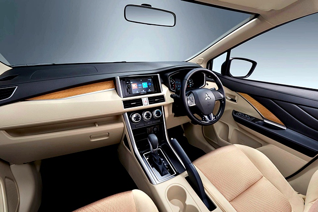 ภายในห้องโดยสารดูเรียบหรู สะอาดโปร่งตา แดชบอร์ดเล่นสีทูโทนด้านบนเป็นสีเข้มด้านล่างเป็นเบจสอดแทรกด้วยจุดสัมผัสผิวลายไม้ และในส่วนแผงข้างประตูก็เช่นกัน ทางมิตซูบิชิบอกว่า มินิเอ็มพีวีรุ่นนี้จะมีความอเนกประสงค์ด้วยพื้นที่ภายในห้องโดยสารและสัมภาระด้านหลังที่มากพอ นอกจากนี้ยังเข้า-ออกที่นั่งแถว 3 ได้สะดวกด้วย