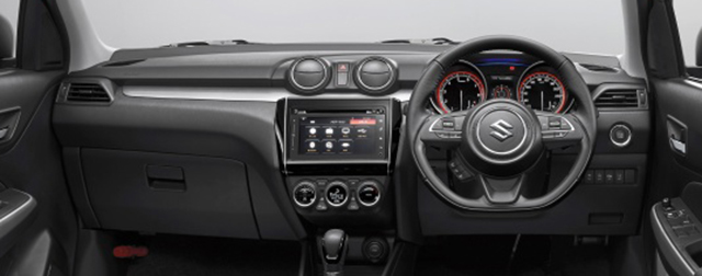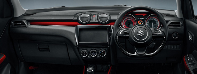 ภาพเปรียบเทียบแผงคอนโซลระหว่าง รุ่น Swift Sport (บน) กับ รุ่นมาตรฐาน (ล่าง)