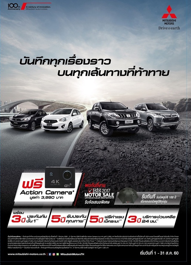 เชิญสัมผัสยานยนต์คุณภาพทุกรุ่นได้ที่พื้นที่จัดแสดงของ มิตซูบิชิ ในงาน Big Motor Sale 2017 ที่ไบเทค บางนา ฮอลล์ EH 101 - 106 บูธ 1 ในวันที่ 19 - 27 สิงหาคม 2560 ตั้งแต่เวลา 10:00 - 22:00 น.