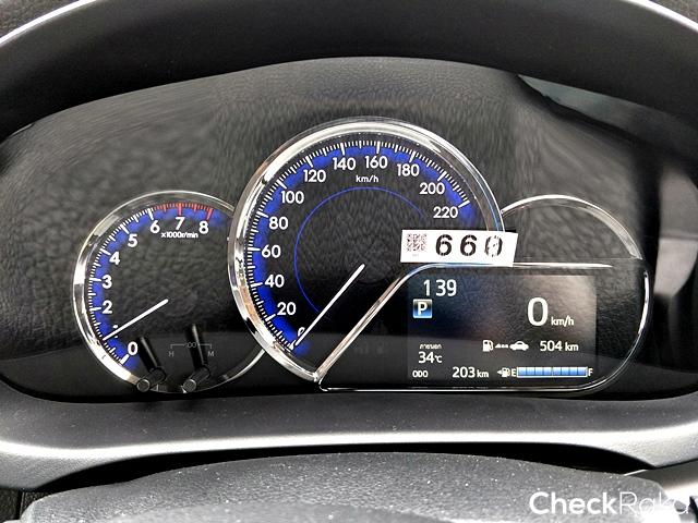 การทดลองขับทำกันภายในไบเทคด้านหลังฮอลล์จัดแสดงงานรถยนต์ ซึ่งทางโตโยต้าได้เตรียมรถยนต์หลากหลายรุ่นไว้ให้ผู้ที่สนใจได้ลองขับกันจริงๆ เพื่อประกอบการตัดสินใจซื้อ โอกาสนี้ผู้เขียนจึงถือโอกาสขอทดลองขับโดยได้ Yaris Ativ รุ่น1.2S หลังเข้าไปนั่งในตำแหน่งผู้ขับพร้อมปรับเบาะเตรียมขับ ก็รู้สึกว่าภายในห้องโดนสารออกแบบได้ทันสมัย ไม่ว่ามาตรวัดเรืองแสงแบบ Optitron ที่ดูดี เพียบพร้อมด้วยข้อมูลสำคัญ และชัดเจนทุกรายละเอียด โดยมีหน้าจอแสดงข้อมูลการขับขี่อัจฉริยะ MID ขนาด 4.2 นิ้ว (เฉพาะรุ่น S) เสริมอยู่มุมล่างขวา ส่วนที่โดดเด่นเกินตัวคือ เฮดยูนิตแบบหน้าจอสัมผัสขนาด 7 นิ้ว ซึ่งสามารถเชื่อมต่ออุปกรณ์ผ่านบลูทูธได้ แถมยังมีบริการพิเศษ T-Connect นอกจากนี้ยังมีระบบปรับอากาศอัตโนมัติ พร้อมจอ LCD ช่วยให้เลือกปรับได้ง่าย ส่วนปุ่ม Push Start ก็เป็นอุปกรณ์อำนวยความสะดวกมาตรฐานสำหรับรุ่นนี้