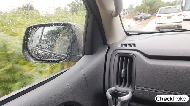ระบบความปลอดภัยที่มีมาให้และสำคัญอีกอย่างคือ ระบบแจ้งเตือนมุมอับสายตา (Side Blind Zone Alert) ระบบแจ้งเตือนเมื่อออกจากช่องจราจร (Lane Departure Warning) ระบบเตือนการชนด้านหน้า (Forward Collision Alert) โดยตลอดทริป ช่วยเตือนให้ขับได้ปลอดภัย เพราะในระหว่างการขับทดสอบ จำเป็นต้องพูดคุยกับวิทยุสื่อสารในบางครั้ง หรือว่าบันทึกภาพ อาจมีจังหวะที่ความระวังลดลง ระบบต่างเหล่านี้ช่วยเตือนให้กลับมาขับได้อย่างปลอดภัยครับ