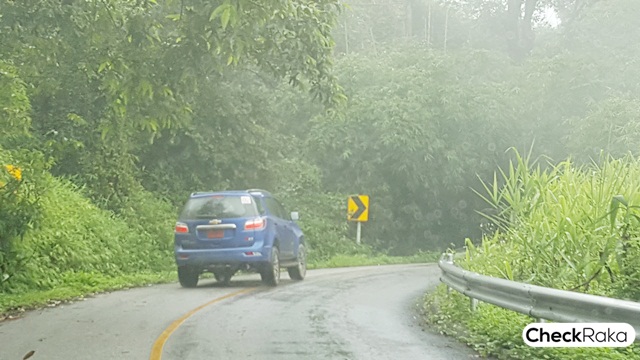 สำหรับการทดสอบขับมันๆ กับเชฟโรเลต เทรลเบลเซอร์ Z71 ทริปนี้ ได้ลองทั้งถนนเรียบและออฟโรดนิดๆ เนื่องจากฝนถล่มลงมาอย่างหนักทำให้เส้นทางที่ใช้ในบางช่วงเป็นโคลน และในช่วงขึ้นไหล่เขาระหว่างดอยตุง - ช้างมูบ มีทั้งสภาพถนนที่เปียกลื่น โค้งหักสลับซ้าย-ขวา นับเป็นการทดสอบสมรรถนะทั้งกำลังเครื่องยนต์และการควบคุมรถได้เป็นอย่างดี