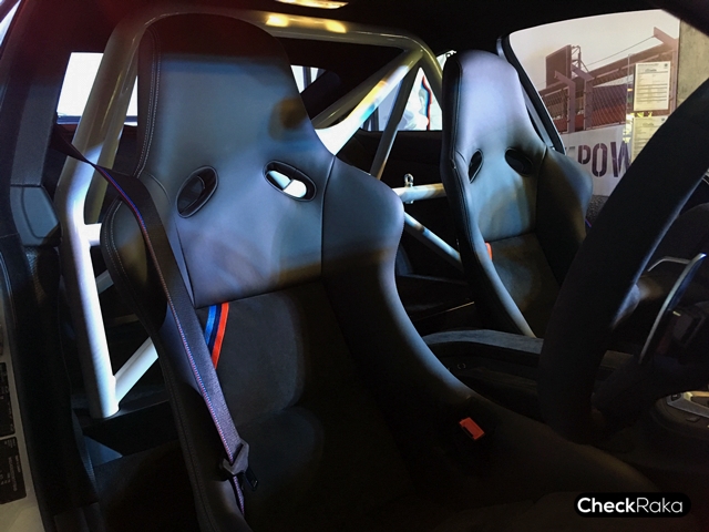 ภายในห้องโดดเด่นด้วยเบาะหน้าคู่แบบ M Carbon bucket seat หุ้มด้วย Alcantara และหนังแกะเมอริโน ส่วนพื้นผิวอื่นๆ ภายในก็หุ้มด้วย Alcantara เช่นกัน รวมถึงพวงมาลัย M Sports ที่มีเครื่องหมายสีเทาที่ตำแหน่ง 12 นาฬิกา ขณะที่เบาะหลังถูกแทนที่ด้วยโครงเหล็ก rollover bar ส่วนในด้านความสะดวกสบายและความปลอดภัยก็ครบครันด้วยระบบนำทางแบบ Professional ไฟหน้า LED ที่มาพร้อมระบบ BMW Selective Beam ไฟท้ายแบบ OLED ระบบควบคุมการจอดด้านหน้าและด้านหลังหรือ Park Distance Control และกระจกภายในและภายนอกที่ปรับระดับความสว่างได้อัตโนมัติ