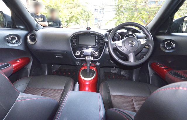 ภายในสไตล์สปอร์ตตกแต่งด้วยเฉดสีแดง พร้อมเทคโนโลยี I-CON หรือ Integrated-Control System พร้อมหน้าจอ Interface แสดงผลระบบปรับอากาศ (Climate) และโหมดการขับขี่ (Driving-Mode) 3 ฟังก์ชั่นคือ Eco Mode, Normal Mode และ Sport Mode พร้อมเพิ่มระบบ I-Connect ด้วย EZ Talk เพื่อสื่อสารกับเพื่อนในกรุ๊ปนิสสันจู๊คด้วยกันได้ เพียงใช้นิ้วสัมผัสแล้วพูดผ่านระบบ เสมือนวิทยุสื่อสาร