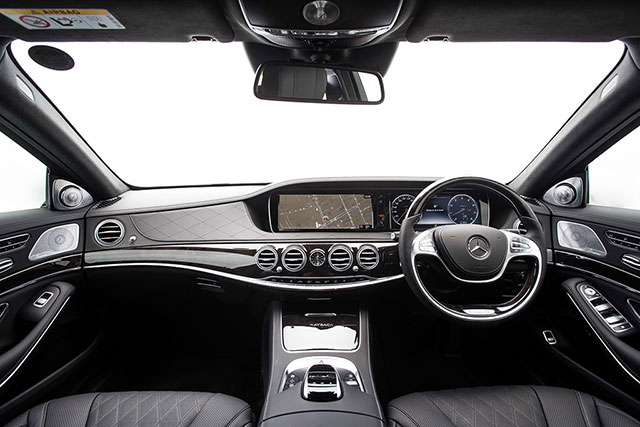 ดีไซน์ภายใน ยังคงเน้นการผสมผสานความหรูหรา ความนุ่มสบายขณะขับขี่ และความกว้างขวาง โดยรถยนต์รุ่นนี้ได้รับการตกแต่งด้วยเบาะนั่งหุ้มหนัง Nappa แบบ Exclusive Package ตัดเย็บลายเบาะแบบ Diamond Design, ด้านบนของคอนโซลหน้า และส่วนกลางของแผงประตูหุ้มหนัง Nappa, ผ้าหลังคาและแผงบังแดดหน้าหุ้มด้วย Dinamica Microfibre, นาฬิกาแบบอนาล็อก ที่มาพร้อมกับ IWC ดีไซน์ รวมถึงระบบมัลติมีเดียอันล้ำสมัย ไม่ว่าจะเป็น ระบบ Comand Online เชื่อมต่ออินเทอร์เน็ต และระบบนำทาง (Navigation System) พร้อมรีโมทควบคุมสำหรับผู้โดยสารด้านหลัง, เครื่องเล่นดีวีดีแบบ 6 แผ่น (DVD Changer), ระบบสั่งการด้วยเสียง (Linguatronic) เฉพาะภาษาอังกฤษ, ระบบเครื่องเสียงแบบ Burmester High-End 3D Surround Sound System, ระบบควบคุมและสั่งงานด้วย Touchpad, ระบบแสดงผลข้อมูลการขับขี่บนกระจกบังลมด้านหน้า (Head-Up Display) และระบบความบันเทิงสำหรับผู้โดยสารด้านหลัง พร้อมจอแสดงผล 2 ตำแหน่ง