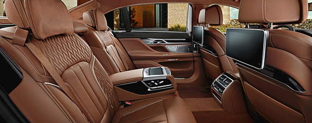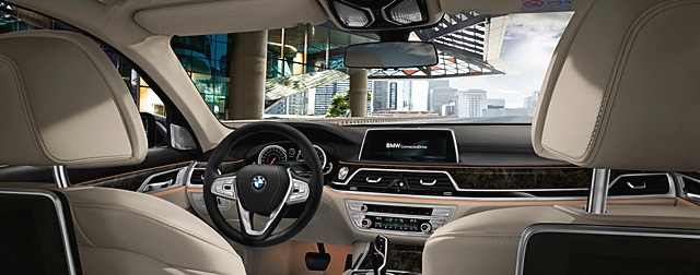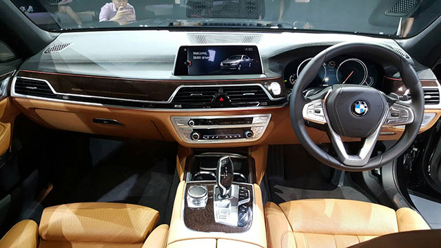 ภายในโดดเด่นด้วยคอนโซลหน้าสไตล์พรีเมี่ยมเอกลักษณ์ของ BMW มาตรวัตแบบจอสีแสดงผลหลากหลายฟังก์ชั่น ระบบ Gesture Control ใช้เพียงมือปัดเบาๆ หน้าจอก็สามารถควบคุมการทำงานของจออัจฉริยะ iDrive หลังคาแบบ Panorama Glass Roof Sky Lounge เหมือนอยู่ในเลาจ์สุดหรูในโรงแรม ที่ผู้โดยสารตอนหลังติดตั้ง Tablet ในรูปแบบของ BMW Touch Command บริเวณเท้าแขน เพื่อควบคุมการทำงาน รวมถึงคำสั่งการเชื่อมต่อกับอุปกรณ์ต่างๆ ได้อย่างสะดวกสบาย เบาะตอนหน้านั่งสบาย พร้อมเบาะตอนหลังที่ปรับระดับได้แทบทุกแนว เพื่อความสะบายมากยิ่งขึ้น