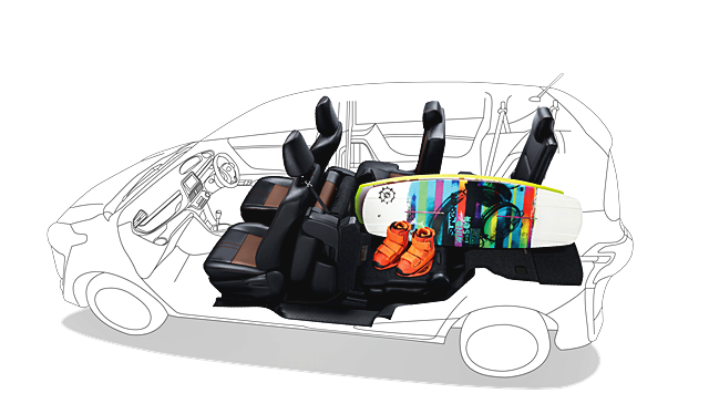 เบาะแถว 2 เลื่อนสไลด์หน้า-หลังได้เล็กน้อยและเบาะแถว 3 สามารถพับเก็บมาด้านหน้าเพื่อซ่อนให้แบนราบ เพิ่มที่ได้อีกมากมาย