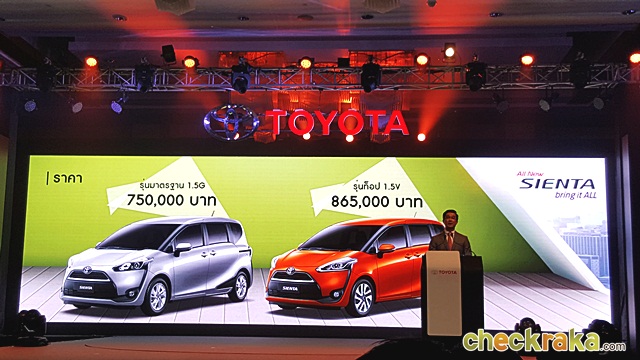 Toyota Sienta "Bring it ALL...สนุกเต็มที่ ชีวิตเต็มสไตล์" ใหม่แกะกล่อง รถ Compact MPV ขนาดเล็ก 7 ที่นั่งใหม่ล่าสุด รุกตลาดรถ Minivan ใช้เครื่องยนต์เบนซิน รหัส 2NR-FE 4 สูบ DOHC 16 วาล์ว Dual VVT-i 1,496 ซีซี ให้แรงม้าสูงสุด 108 แรงม้า ที่ 6,000 รอบ/นาที แรงบิดสูงสุด 140 นิวตันเมตรที่ 4,200 รอบ/นาที ส่งกำลังผ่านะเกียร์อัตโนมัติ CVT 7 จัวหวะ ประหยัด 16.1 กม./ลิตร สร้างกระแสตลาดรถยนต์ MPV บ้านเราให้คึกคักอีกครั้ง!