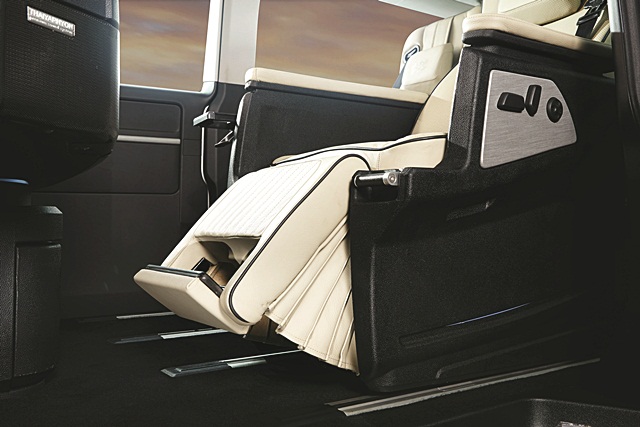 ชุดเบาะ VIP หุ้มหนัง Dakota มีให้เลือก 2 โทนสีคือ ครีมขลิบดำและส้มอิฐขลิบดำ พร้อมแผงควบคุมระบบไฟฟ้าที่ปรับเบาะนั่งให้เอนได้ถึง 180 องศา ปรับที่รองน่องได้กว่า 90 องศา ที่วางแขนกับที่รองรับเท้าซึ่งออกแบบเฉพาะ และสิ่งที่สำคัญสุดคือทุกขั้นตอนการผลิตของเราผ่านการรับรองมาตรฐานโดยโฟล์คสวาเกน ทั้งการออกแบบ คัดเลือกวัสดุ การผลิต และการตรวจสอบคุณภาพก่อนออกจากโรงงานประกอบ