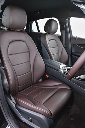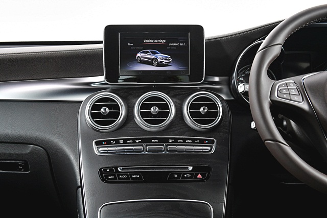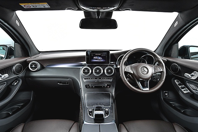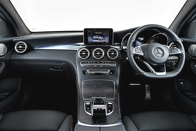 ระบบควบคุมอุณหภูมิแบบ THERMATIC แบบ 2 โซน, เบาะนั่งสำหรับผู้ขับขี่และผู้โดยสารด้านหน้าปรับระดับด้วยระบบไฟฟ้าพร้อมบันทึกหน่วยความจำ โดยเบาะนั่งด้านหลังสามารถพับได้ทั้ง 1:3/2:3 ตามความต้องการเพื่อเพิ่มพื้นที่ในการจัดเก็บของที่เพิ่มขึ้น รวมถึงระบบมัลติมีเดียอย่างระบบวิทยุ-ซีดี MB Audio 20, ระบบเชื่อมต่อโทรศัพท์เคลื่อนที่แบบ Bluetooth, ระบบควบคุมและสั่งงานด้วย touchpad และระบบรองรับการใช้งานระบบนำทาง (Pre-installation for SD-Card navigation) โดย GLC 250 d 4MATIC Coup AMG Plus ตกแต่งด้วยเบาะนั่งหุ้มหนังแบบสปอร์ตพวงมาลัยมัลติฟังก์ชันแบบสปอร์ตท้ายตัด ชุดคันเร่งและแป้นเบรกแบบสปอร์ต ระบบกุญแจแบบ KEYLESS-GO รวมถึงระบบเสียงรอบทิศทาง Burmester ระบบแสดงผลข้อมูลการขับขี่บนกระจกบังลมหน้า (Head-up display)