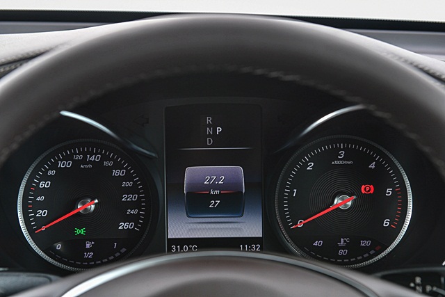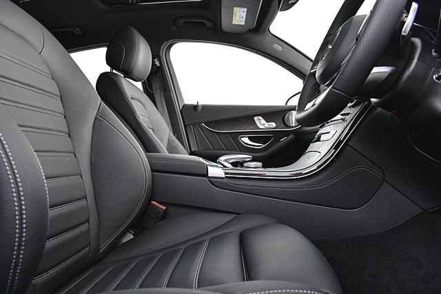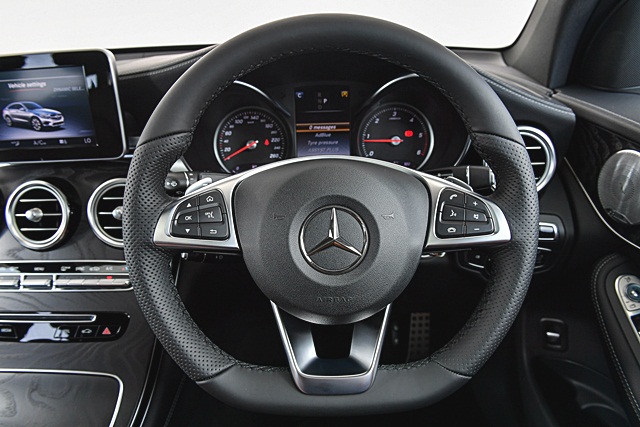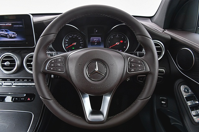 นอกจากนี้ รถยนต์ทั้ง 2 แบบยังมาพร้อมกับพวงมาลัยนิรภัยพร้อมเพาเวอร์ปรับน้ำหนักตามความเร็วรถ เพื่อเสริมความรู้สึกสปอร์ตให้มากขึ้นโดยรถยนต์รุ่นนี้มีอัตราทดการหมุนพวงมาลัย (องศาการหมุนของล้อหน้าต่อการหมุนพวงมาลัยหนึ่งรอบ) ที่ 15.1 ต่อ 1 (ในขณะที่อัตราทดการหมุนพวงมาลัยของรถยนต์รุ่น GLC นั้นอยู่ที่ 16.1 ต่อ 1) ช่วยให้ผู้ขับขี่ควบคุมรถได้ง่ายขึ้น และช่วยเสริมความรู้สึกสปอร์ตเมื่อเลือกใช้โหมดของระบบกันสะเทือนแบบ SPORT และ SPORT+, ฟังก์ชัน ECO start/stop