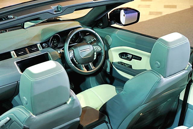 Range Rover Evoque Convertible มาพร้อมการออกแบบชั้นยอด โดดเด่นทั้งการใช้งานปกติหรือเปิดประทุน ตัวโครงหลังคาและผ้าใบมีน้ำหนักเบาสามารถเปิดออกด้วยเวลา 21 วินาที และพับเก็บได้ภายใน 18 วินาที ในขณะที่ขับขี่ด้วยความเร็วสูงถึง 30 ไมล์/ชม. หรือ 48 กม./ชม. ภายในห้องโดยสารสะดวกสบายสำหรับผู้โดยสาร 4 คน พื้นที่เก็บสัมภาระจุใจขนาด 251 ลิตรและช่องสำหรับเปิดเชื่อมระหว่างเบาะหลังกับที่เก็บสัมภาระท้ายรถ (ski hatch) ส่วนระบบอินโฟเทนเมนต์ใช้เทคโนโลยีล่าสุดบนจอแสดงผลแบบทัชสกรีนขนาด 10.2 นิ้ว สมรรถนะตัวรถสามารถปรับให้เข้ากับทุกสภาพพื้นที่ ด้วยเครื่องยนต์เบนซิน SI4 เริ่มต้น 6,299,000 บาท