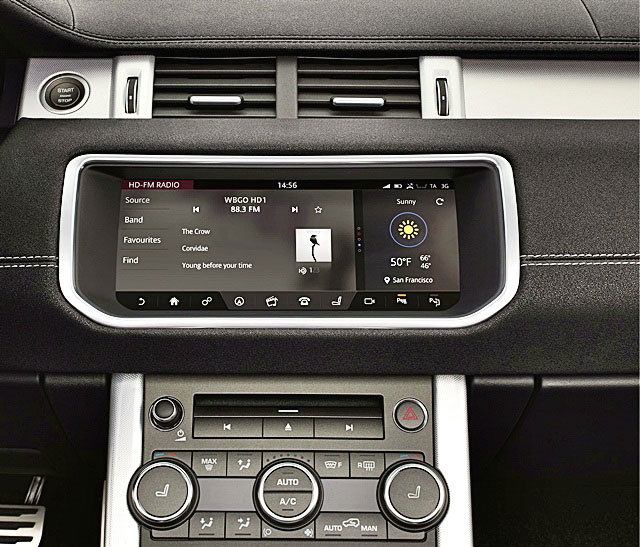 ระบบเครื่องเสียงพรีเมี่ยม ระบบอินโฟเทนเมนต์ซึ่งเป็นเทคโนโลยีใหม่ล่าสุดของจากัวร์ แลนด์โรเวอร์ จอแสดงผลแบบทัชสกรีนความละเอียดสูง InControlTM Touch Pro ขนาด 10.2 นิ้ว เชื่อมต่อกับอุปกรณ์ไร้สาย สมาร์ทโฟน ระบบนำทาง ตลอดจนอินเทอร์เน็ต 3G ได้อย่างรวดเร็ว อย่างไรก็ตามนอกจากความหรูหราทันสมัยภายในและภายนอกแล้ว เรนจ์โรเวอร์ไม่ได้มองข้ามเรื่องความปลอดภัยโดย Range Rover Evoque Convertible ได้ติดตั้งโรลบาร์คู่ซ่อนอยู่ในโครงสร้างด้านหลังของตัวรถเสริมความแข็งแกร่งเพื่อคุ้มครองความปลอดภัยให้กับผู้โดยสารภายในรถ