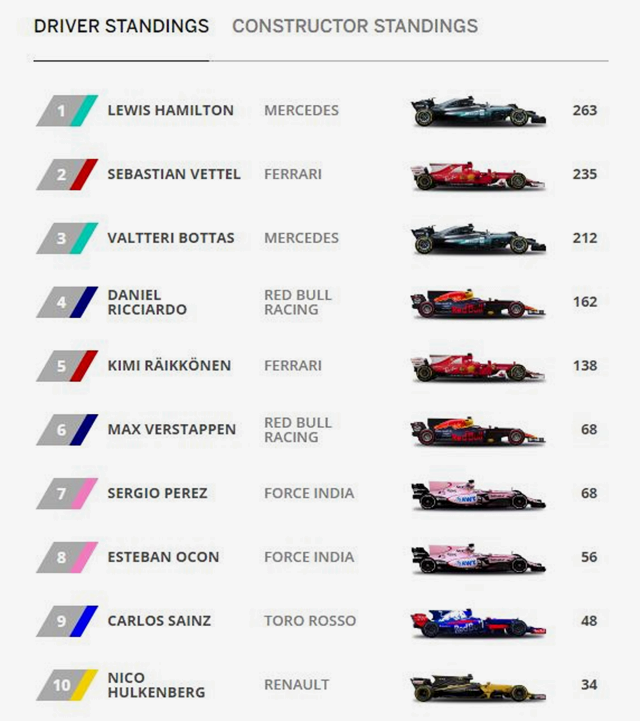 แต่ทันทีที่สัญญาณไฟสตาร์ทดับลงความมันกับดราม่าก็เริ่มขึ้นทันที ทั้งที่ยังไม่ทันจะผ่านโค้งแรกกันเลย เมื่อ เวทเทล กับ คิมิ ไรโคเนน ทีม Ferrari รวมถึง แม็กซ์ เวอร์สแตพเพน ทีม Red Bull Racing Tag Heuer เกิดปะทะกัน แถมยังมี เฟอร์นันโด อลองโซ่ ทีม Mclaren Honda ที่โดนหางเลขร่วมปะทะไปด้วยแต่โชคดีที่ยังวิ่งต่อได้ และจากอุบัติเหตุในครั้งนี้เป็นโอกาสให้ แฮมิลตันเสียบขึ้นมาอยู่หัวแถวได้ในโค้งแรก ตีคู่กับเวทเทล หลังจากนั้นไม่นาน เวทเทลก็เกิดเสียหลัก หมุนชนเข้ากับกำแพงจนออกจากการแข่งไปอีกคัน เรียกได้ว่าดับฝันทีมม้าลำพองในสนามนี้ไปทันที