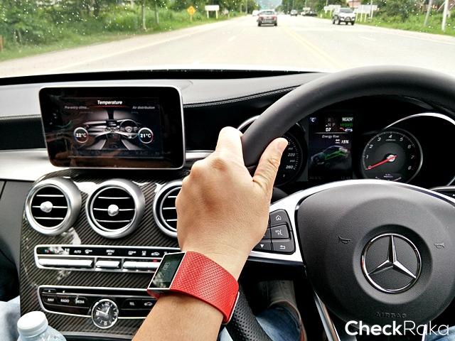 การทดสอบเริ่มต้นด้วยการไปรับรถที่โหมดสาทร และเลือกรถโดยใช้วิธีจับกุญแจรถ โดยมีทั้งหมด 7 คัน แบ่งเป็นรถยนต์ในกลุ่ม Dream Car ประกอบด้วย C 250 Coupe' AMG Dynamic, C 300 Cabriolet AMG Dynamic, Mercedes-AMG C 43 4MATIC Coupe' และ Mercedes-AMG SLC 43 กลุ่ม Contemporary Luxury ประกอบด้วย E 220 d Estate AMG Dynamic พร้อมยนตกรรมรุ่นอื่นภายใต้แบรนด์ EQ - Electric Intelligence by Mercedes-Benz เช่น C 350 e AMG Dynamic และ S 500 e Executive แบ่งสื่อมวลชนนั่งคันละ 2 คน ผู้เขียนกับเพื่อนสื่อมวลชนอีกท่านจับได้กุญแจรุ่น AMG SLC 43 (4,990,000 บาท) ที่มีพลังระดับ 367 แรงม้า แรงบิดสูงสุด 520 นิวตันเมตร นับเป็นโรดสเตอร์ที่ขับสนุก ยิ่งช่วงที่ได้ขับบนถนนเปิดโล่งยิ่งสัมผัสได้ถึงขุมพลังความแรงที่พร้อมระเบิดอัตราเร่งได้ทุกขณะ แต่ที่ประทับใจคือ ความรู้สึกภายในห้องโดยสารที่พร้อมให้ผู้ขับกดคันเร่งออกไปโลดแล่นกับทุกเส้นทางที่ท้าทาย โดยเฉพาะเส้นทางขึ้น-ลงเขา