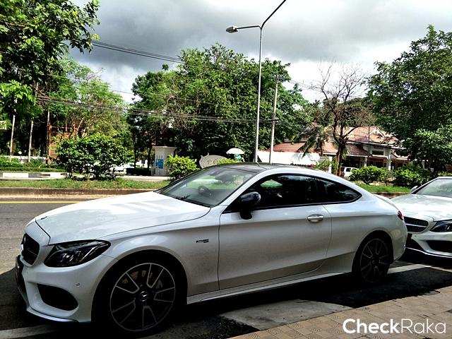 ผู้เขียนได้กุญแจรุ่น AMG C 43 4MATIC Coupe' (5,190,000 บาท) สปอร์ตคูเป้สุดเท่ในกลุ่มดรีมคาร์ที่ให้พลังแรงเร้าใจระดับ 367 แรงม้า ส่งถ่ายกำลังผ่านเกียร์อัตโนมัติ 9 สปีด จุดหมายแรก ขบวนฯ ได้พักระหว่างทางเพื่อแวะถ่ายรูปพร้อมกันที่เขื่อนอุบลรัตน์ จากนั้นจึงเดินทางไปมองทุนและอุปกรณ์ต่อ ระหว่างขับผู้เขียนได้ลองเลือกใช้โหมดต่างๆ เช่น ECO, COMFORT, SPORT และ SPORT+ ล้วนให้การตอบสนองที่แตกต่างกันตามลักษณะการขับ แต่มักเลือก COMFORT สลับ SPORT เพราะเหมาะสมกับเส้นทางถนนรอบนอกจังหวัดขอนแก่น ส่วนระบบช่วงล่างสามารถปรับแยกได้ต่างหากตามความเหมาะสม อย่างไรก็ตามด้วยการลุกเข้า-ออกค่อนข้างลำบากตามสไตล์สปอร์ตคูเป้แลกกับความหล่อเหลาของรูปลักษณ์ตัวรถ จังหวะที่ประทับใจคือ การเร่งแซงรถช้าในช่วงเลนสวน ตัวรถ AMG C43 Coupe ให้อัตราเร่งและการทรงตัวอันดีเยี่ยม สามารถเร่งแซงผ่านช่วงถนนเปียกที่ผิวเป็นลอนคลื่นได้อย่างมั่นใจ