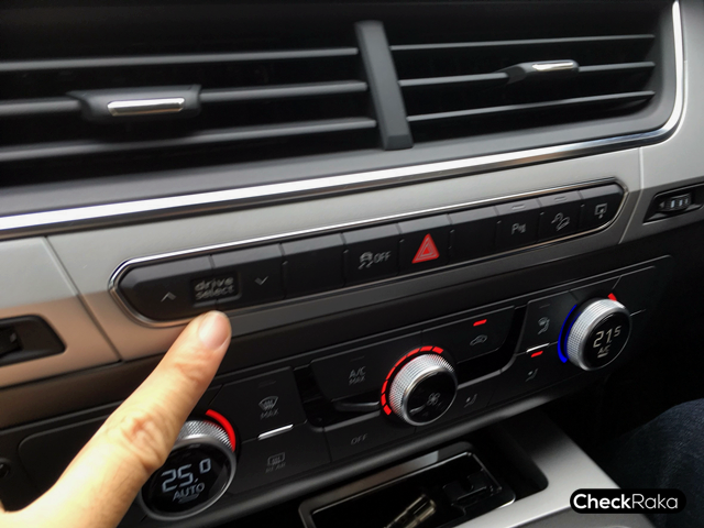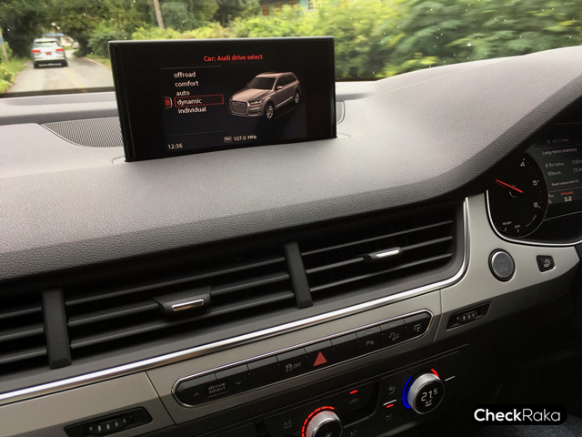 โดยเจ้า Q7 45 TDI quattro S Line จะมีโหมดการขับขี่ให้เลือกทั้งแบบ Off Road, Comfort, Auto, Dynamic และ Individual โดยโหมดการขับขี่เหล่านี้จะปรับการทำงานในส่วนของเครื่องยนต์และระบบเกียร์ โดยจะไม่ได้ไปยุ่งกับระบบช่วงล่างที่เป็นแบบถุงลม เท่าที่ได้สัมผัสการตอบสนองก็จะเปลี่ยนไปอย่างชัดเจน ก็ขึ้นอยู่กับผู้ขับที่จะปรับให้เหมาะกับสภาพเส้นทาง และลักษณะการขับขี่ของแต่ละคนด้วย โดยจะแสดงผลการเลือกโหมดผ่านทางหน้าจอสีขนาด 7 นิ้ว ที่สามารถกดเก็บลงไปได้