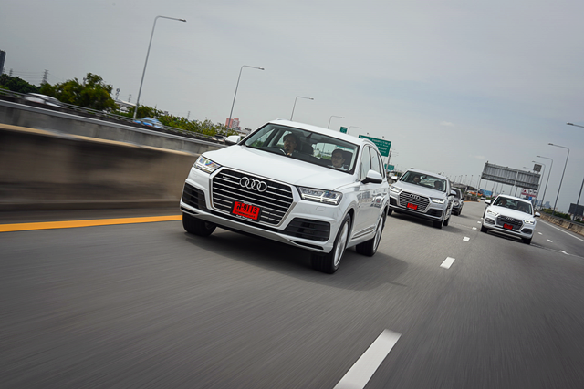 เส้นทางที่ใช้ในครั้งนี้ประมาณ 180 กม. โดยทาง Audi ได้เลือกใช้เส้นทาง กรุงเทพฯ-อยุธยา ส่วนรถที่นำไปร่วมขบวนในครั้งนี้ก็มีหลากหลายทั้ง TT Coupe 45 TFSI quattro S Line, Q5 35 TDI quattro, Q5 45 TFSI quattro S Line, Q7 45 TDI quattro S Line, Q7 45 TFSI quattro S Line และ The New A5 Coupe ให้ได้สัมผัสกันแบบเต็มๆ การเดินทางครั้งนี้เริ่มจาก โชว์รูม Audi ที่ ถ.เพชรบุรีตัดใหม่ โดยก่อนออกเดินทางเพื่อความยุติธรรมทางทีมงานได้ให้สื่อมวลชนได้จับฉลากรถที่จะได้ขับ ซึ่งผมและเพื่อนสื่อมวลชนจับได้เป็นเจ้า Q7 45 TDI quattro S Line มาเป็นพาหนะประจำทริป