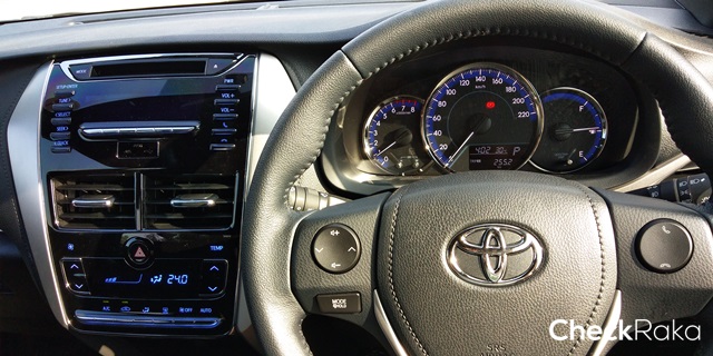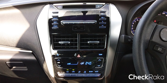 พวงมาลัย 3 ก้าน พร้อมปุ่มควบคุมการรับ-วางสายโทรศัพท์ เพิ่ม-ลดระดับเสียง ทางด้านระบบเครื่องเสียงเป็นแบบจอดิจิทัลธรรมดา ยังไม่ใช่ระบบสัมผัส สามารถเชื่อมต่อ Bluetooth ได้ และระบบแอร์อัตโนมัติที่มีหน้าปัดสวยหรูหราขึ้น มาพร้อมช่องเสียบ USB บนหน้าปัด 1 ช่อง AUX อีก 1 ช่อง ส่วนปลั๊คไป 12V อยู่บริเวณคอนโซลกลางที่มีกล่องเก็บของอันน่ารักมาให้ด้วย
