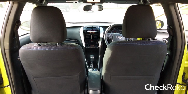 เบาะคู่หน้าหุ้มผ้านั่งได้กำลังพอดี ไม่อึดอัด แต่ก็ยังมีส่วนที่แนบลำตัวมากเกินไปสำหรับคนตัวใหญ่ แต่ยังดีที่ปรับระดับสูง-ต่ำได้ ให้พอดีกับระยะวางเท้าบนเบรคและคันเร่ง ส่วนเบาะหลังหุ้มด้วยผ้าเช่นกันและปรับพับแยก 60:40 ได้ แต่ยังไม่ถึงขนาดแบนราบ
