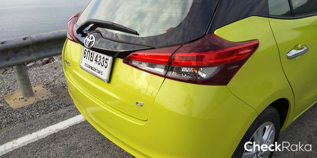 ส่วนประตูท้ายทรงใหม่ไฟท้ายทรงมนมากขึ้น แต่ยังมีส่วยยักด้านข้างเช่นเดิม และมีสปอยเล่อร์มาให้เพิ่มความสปอร์ต มาถึงส่วนของหลังคาน่าจะเป็นจุดเดียวที่เป็นชิ้นเดียวกับรุ่นเดิมอยู่ โดยรวมแล้วยารีสใหม่นี้ปรับภายนอก ทั้งส่วนหัว, ท้าย และด้านข้าง ใหม่หมด ทำให้ดูดีขึ้น ทันสมัยและตอบสนองวัยรุ่นมากขึ้น