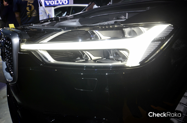 ดีไซน์ของไฟหน้าจำลองรูปทรงของค้อนของเทพเจ้าสายฟ้า หรือ ธอร์ มานั่นเอง (ช่วยจินตนาการตามไปด้วยนะครับ) โดยตัวไฟจะเป็นแบบ LED สำหรับรุ่น D4 AWD Momentum, T8 Twin Engine AWD Momentum จะเป็นแบบปรับระดับสูง/ต่ำอัตโนมัติ ส่วน T8 Twin Engine AWD R-Design จะเป็นแบบหักเหตามพวงมาลัย และปรับระดับสูง/ต่ำอัตโนมัติ โดยในทุกรุ่นจะมี Daytime Running Light แบบ LED ติดตั้งมาในโคมไฟหน้า ส่วนกระจังหน้านั้นจะมีรูปทรงเหมือนกันแต่แตกต่างกันที่ดีไซน์