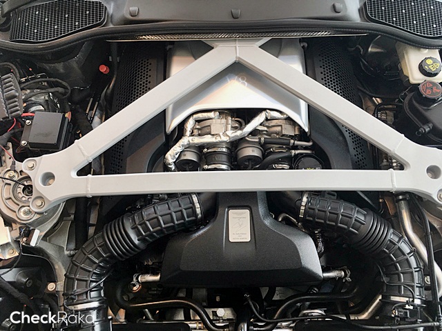 Aston Martin DB11 V8 นอกจากจะมีดีไซน์อันโดดเด่นสะกดสายตาแล้ว ในด้านสมรรถนะยังโดดเด่นไม่เบา ด้วยอัตราเร่ง 0-100 กม./ชม ใน 4 วินาที จากเครื่องยนต์ V8 ทวินเทอร์โบชาร์จ ขนาด 3,982 ซีซี. ให้พละกำลัง 503 แรงม้า ที่ 6,000 รอบต่อนาที แรงบิดสูงสุด 675 นิวตันเมตร ที่ 2,000-5,000 รอบ/นาที ส่งกำลังด้วยเกียร์อัตโนมัติ 8 สปีด ความเร็วสูงสุดถึง 300 กม./ชม. ปล่อยก๊าซคาร์บอนไดออกไซด์เพียง 230 กรัม/กม.