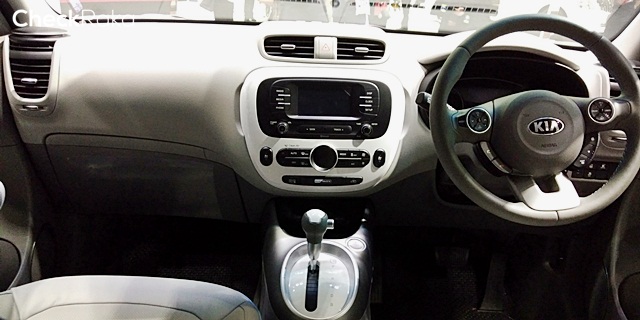 ส่วนภายในของ Soul EV นั้นดีไซน์เรียบง่าย แต่ให้ความสะดวกสบาย พวงมาลัยเป็นแบบมัลติฟังก์ชั่น หุ้มด้วยหนังกระชับมือ ปรับระดับสูง-ต่ำ ได้ มีการปรับน้ำหนักพวงมาลัยตามสภาวะการขับขี่ทั้งยังสามารถปรับอุ่นได้ด้วย เครื่องเสียงที่ให้มารองรับ MP3, AUX, USB สามารถเชื่อมต่อโทรศัพท์ผ่าน Bluetooth เบาะนั่งเป็นแบบหนังใช้สีขาวเทาเดินขอบด้วยสีฟ้าตามสีทูโทนของตัวรถ เบาะนั่งคู่หน้ามีระบบปรับอุ่นให้ด้วย