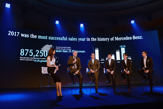 ปี 2017 เป็นอีกหนึ่งหน้าประวัติศาสตร์ของ Mercedes-Benz ทั่วโลก ด้วยยอดจำหน่ายรถยนต์ 2,289,344 คัน เพิ่มขึ้นกว่าปีก่อนถึง 9.9% เป็นผลมาจากรถยนต์ SUV ที่มียอดขายกว่า 800,000 คัน (14%) ทางด้าน Mercedes-AMG สร้างสถิติใหม่ด้วยยอดขายสูงกว่า 130,000 คัน สำหรับในภูมิภาคเอเชียแปซิฟิก รถยนต์กว่า 875,250 คัน ได้ถูกส่งมอบให้กับลูกค้า ในประเทศไทย Mercedes-Benz ยังคงครองตำแหน่งผู้นำในตลาดรถยนต์หรู 17ปี ติดต่อกัน ด้วยยอดขาย 14,484 คัน เพิ่มขึ้นจากปี 2016 กว่า 23%