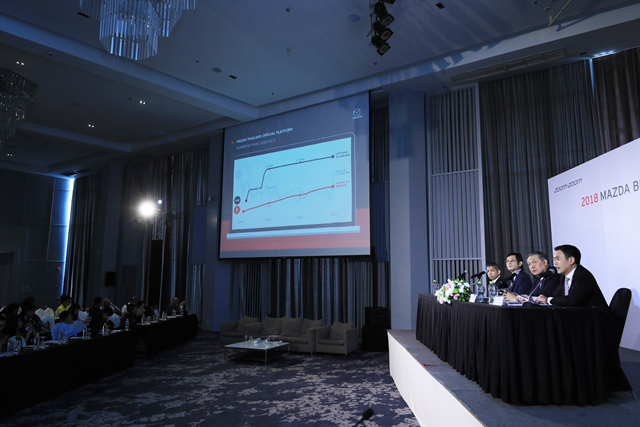 มาสด้ายังประเมินสถานการณ์ตลาดรถยนต์ของประเทศไทยในปี 2561 ว่ามีแนวโน้มและทิศทางที่สดใส จะเห็นได้จากงานมอเตอร์ เอ็กซ์โปที่ผ่านมา แต่ละค่ายมียอดจองที่เพิ่มขึ้น และส่วนใหญ่เกินกว่าเป้าหมายที่ตั้งไว้ รวมถึงในส่วนของมาสด้าเอง แสดงให้เห็นถึงปัจจัยบวกหลายๆ ด้านที่เกิดขึ้นในประเทศ เช่น เศรษฐกิจที่ฟื้นตัว ความเชื่อมั่นของผู้บริโภคกลับคืนมา