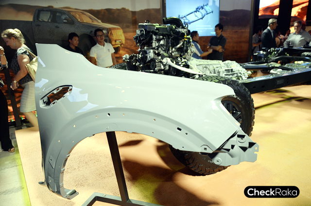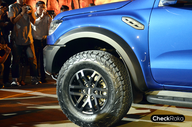 แก้มข้างรถผลิตขึ้นจากวัสดุคอมโพสิท ทนทานต่อการบุบและรอยขีดข่วน ทั้งยังถูกตีโป่งขยายออกเพื่อรองรับระยะยุบตัวของโช้คอัพที่เพิ่มมากขึ้น และยางออฟโรดขนาดใหญ่ มิติตัวถังของ Ranger RAPTOR นั้นขยายขึ้นกว่า Ranger ในทุกมิติ รวมถึง ระยะช่วงล้อหน้า-หลัง และความสูงใต้ท้องรถด้วย ขณะเดียวกัน ยังมาพร้อมมุมไต่ที่ 32.5 องศา มุมคร่อมที่ 24 องศา และมุมจากที่ 24 องศา ซึ่งเหนือชั้นกว่ารถรุ่นใดที่เคยมีมา