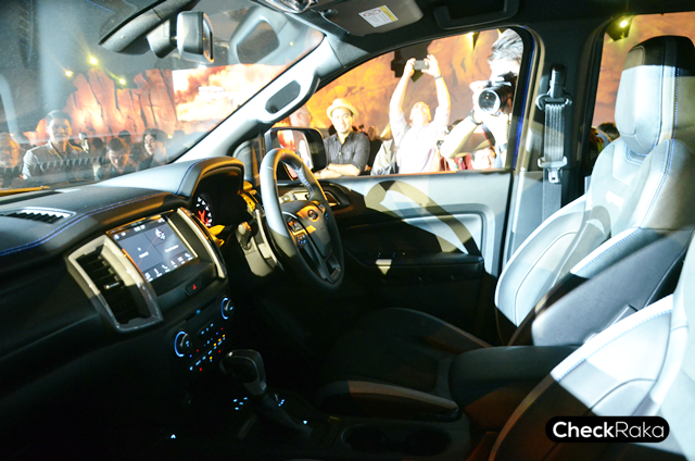 New Ford Ranger RAPTOR (ฟอร์ด เรนเจอร์ แร็พเตอร์) ยังได้ถูกออกแบบภายในด้วยความประณีตตาม DNA ของ Ford Performance ที่ผสานสีสันต่าง ๆ และการเลือกสรรวัสดุที่คงทนและเหมาะสมสำหรับการขับขี่แบบออฟโรดและการใช้งานในชีวิตประจำวัน เบาะที่นั่งได้รับการออกแบบเป็นพิเศษ เพื่อรองรับการใช้งานการขับขี่แบบออฟโรดความเร็วสูง ช่วยให้ผู้ขับขี่สามารถควบคุมรถขณะวิ่งด้วยความเร็วสูงได้อย่างง่ายดาย ทั้งยังมอบความสะดวกสบายระหว่างการเดินทางอย่างเหนือชั้น การเลือกใช้หนังกลับเป็นวัสดุของเบาะนั้น ช่วยให้ผู้ขับขี่และผู้โดยสารยึดเกาะที่นั่งได้ดียิ่งขึ้น ซึ่งสะท้อนให้เห็นถึงการพิจารณาการเลือกใช้วัสดุต่าง ๆ โดยคำนึงถึงการใช้งานจริง