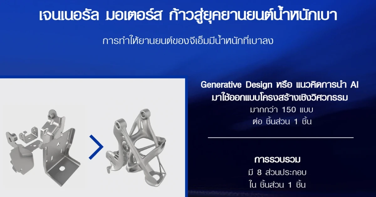 จีเอ็มใช้เทคโนโลยีขั้นสูงออกแบบชิ้นส่วนยานยนต์ เพื่อก้าวสู่ยุคแห่งยานยนต์น้ำหนักเบา