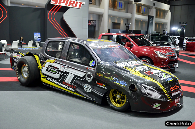 Isuzu Race Car รุ่นโอเพ่น แรงเต็มกำลังด้วยเครื่องยนต์อีซูซุ 4JJ ขยายความจุเป็น 3,200 ซีซี โมดิฟายเครื่องยนต์โดย "ช่างเบิร์ด หลักห้า" ให้กำลัง 1,050 แรงม้า ใช้เทอร์โบ TF08+GARETT GT47 ควบคุมด้วยกล่องอัจฉริยะ ECU = SHOP Standalone เกียร์ Air Shift 7 สปีด จาก LIBERTY เสริมความเฉี่ยวด้วยชุดล้อแม็กซ์ WELD และยางจาก HOOSIER เจ้าของแชมป์รายการ Souped Up Thailand 2017 ในรุ่น Super Max ด้วยสถิติ 7.251 วินาที