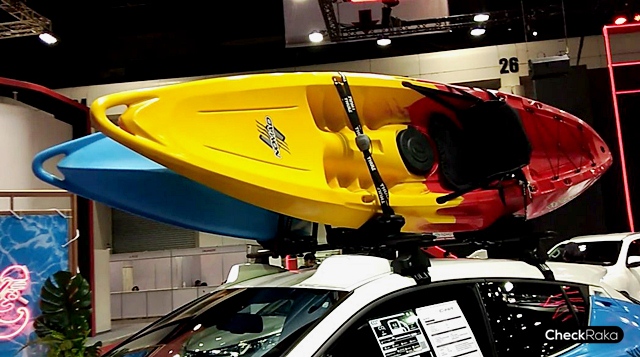 โดย Toyota C-HR (โตโยต้า ซี-เอชอาร์) มาพร้อมการติดสติกเกอร์สีฟ้า สลับชมพูรอบคัน ติดตั้งแร็คหลังคาพร้อมขนอุปกรณ์ทางน้ำหรือ "เรือแคนู" ไว้หนีน้ำยามฝนตก หรือจะไปเที่ยวทะเล เพิ่มชุดแต่งรอบคันและเปลี่ยนยางมาใช้แบบ All-terrain
