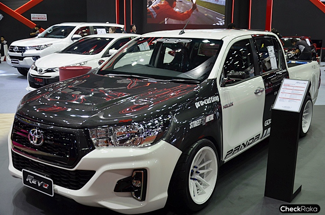 ภายในบูธจัดแสดงรถปิกอัพยอดนิยม Toyota REVO โดยเฉพาะการนำรถแข่ง Cross country ทีม TRD ให้ได้ชนอย่างใกล้ชิด พร้อมกับเหล่ารีโว่ที่ถูกตกแต่งสไตล์ "สายซิ่ง" เป็นแนวทางการการตกแต่งด้วย Toyota REVO มาให้ชมอย่างจุใจ