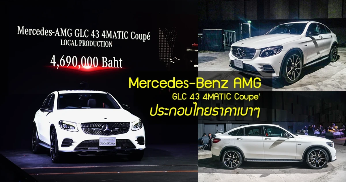 Mercedes-AMG GLC 43 4MATIC Coupe' (CKD) รุ่นประกอบในประเทศเปิดตัวด้วยราคา 4,690,000 บาท สอบถามเพิ่มเติมได้ที่ผู้จำหน่ายอย่างเป็นทางการเมอร์เซเดส เบนซ์ หรือ www.mercedes-benz.co.th