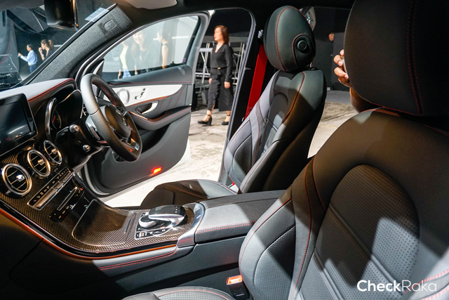 ดีไซน์ภายใน Mercedes-AMG GLC 43 4MATIC Coupe' (CKD) โดดเด่นด้วยเบาะที่นั่งหุ้มหนังแบบ AMG Sport seat ตัดสลับ DINAMICA microfibre ตกแต่งด้วยด้ายสีแดง เพิ่มความเร้าใจด้วย AMG Carbon-fibre โดยเบาะนั่งสำหรับผู้ขับขี่และผู้โดยสารด้านหน้าปรับระดับด้วยระบบไฟฟ้า พร้อมหน่วยบันทึกความจำ, ชุดคันเร่งและแป้นเบรกแบบสปอร์ต, พวงมาลัยมัลติฟังก์ชันแบบสปอร์ตท้ายตัด หุ้มด้วยหนัง nappa คุณภาพสูง, พวงมาลัยนิรภัยพร้อมพาวเวอร์ ปรับน้ำหนักตามความเร็วรถ, กาบบันได สแตนเลส พร้อมสัญลักษณ์ AMG แบบเรืองแสง, ระบบกุญแจแบบ KEYLESS-GO
