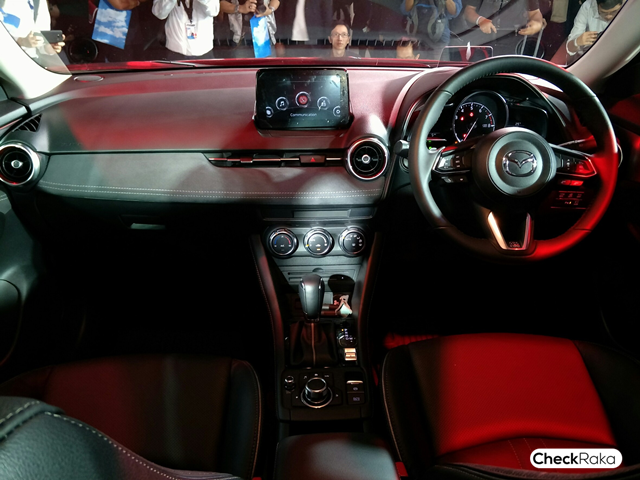 ภายในเน้นความหรูหรามาตรฐานยุโรป ด้วยวัสดุเกรดพรีเมียม เบาะสไตล์บัคเก็ตซีท เบาะหลังแยกพับ 60:40 และแบนราบได้ มาตรวัดสไตล์เดียวกับมาสด้า 3 ด้วยจอแสดงวัดรอบเครื่องยนต์ทรงกลมและมีจอแสดงผลแบบดิจิทัลด้านข้าง พร้อมจอแสดงความเร็วแบบ POP-UP กระจกสะท้อนที่เปิดขึ้นเหนือหน้าปัด บริเวณคอนโซลกลางติดตั้งจอแสดงผลอัจฉริยะ MZD และปุ่มควบคุมทรงกลมที่คอนโซลกลาง ทั้งยังได้เพิ่มเติมระบบ Electric Parking Brake หรือระบบเบรกมือไฟฟ้าพร้อมระบบ Auto Hold เพิ่มความสะดวกสบายในการขับขี่