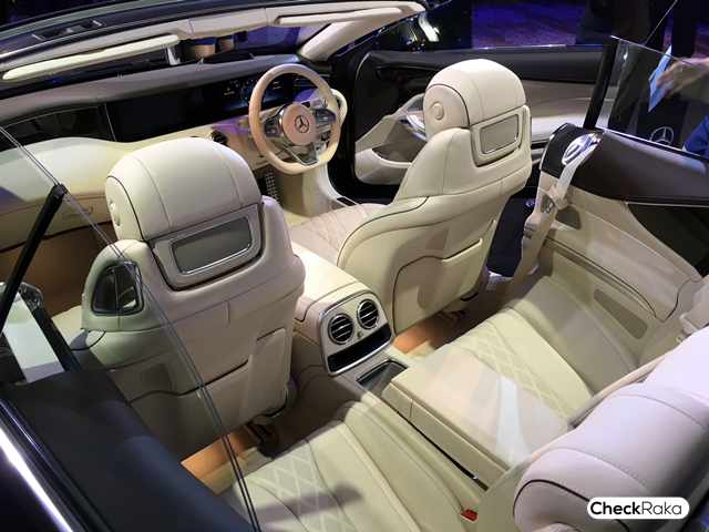 ในขณะที่ Mercedes-Benz S 560 Cabriolet AMG Premium มาพร้อมกับหลังคาแบบ fabric soft-top ที่มีความหนาถึง 3 ชั้น ชั้นนอกสุดเคลือบสารบูทีล (butyl) ซึ่งทำให้รถยนต์มีระดับเสียงรบกวนภายในห้องโดยสารน้อยที่สุด โดยหลังคาสามารถกางเปิดหรือพับปิดได้ในเวลาเพียง 19 วินาที ขณะที่รถวิ่งที่ความเร็วสูงสุด 50 กม./ชม. อีกทั้งยังมาพร้อมกับแผงบังคับทิศทางลม (AIRCAP) อีกด้วย