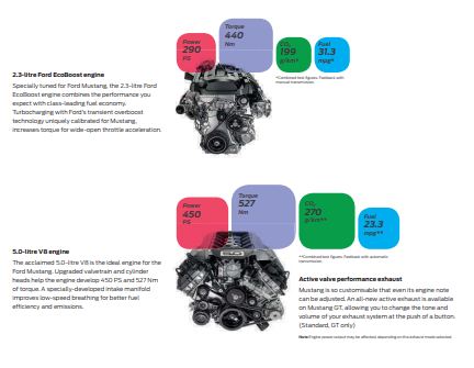 ด้วยดีไซน์ที่ปราดเปรียวและโฉบเฉี่ยวกว่าที่เคย รวมถึงไฟหน้าและไฟท้ายแบบ Full-LED ฟอร์ด มัสแตง มาพร้อมขุมพลังเครื่องยนต์ V8 ขนาด 5.0 ลิตรและเครื่องยนต์ EcoBoost ขนาด 2.3 ลิตร รวมถึงเกียร์อัตโนมัติ 10 สปีด และเทคโนโลยีเหนือระดับอย่างโหมดแอปพลิเคชัน Track AppsTM ที่ให้ผู้ขับขี่เปิดประสบการณ์การขับขี่แบบในสนามแข่ง พร้อมเทคโนโลยีเหนือระดับอย่างระบบ SYNC 3 บนแผงหน้าปัดแสดงผลดิจิตอล LCD ขนาด 12 นิ้ว