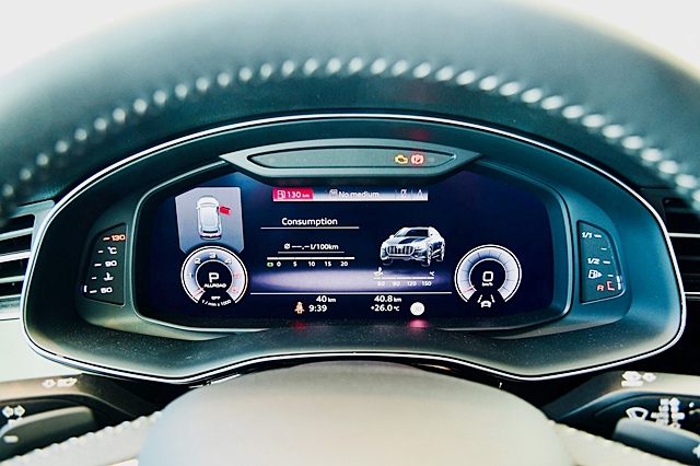 Audi Q8 55TFSI quattro S Line พลังขับเคลื่อนสมรรถนะสูงเบนซิน วี6 Mild hybrid เทอร์โบ เกียร์ Tritronic 8 จังหวะ พร้อมระบบขับเคลื่อน 4 ล้อ quatto กำลังสูงสุด 340 แรงม้า ที่ 5,200 - 6,400 รอบต่อนาที แรงบิด 500 นิวตันเมตร ที่ 1,370 - 4,500 รอบต่อนาที ล้อแม็ก 21 นิ้ว