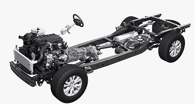 - โครงสร้างตัวถังขึ้นรูปจากเหล็กกล้าทนแรงดึงสูงที่แข็งแกร่งและมีน้ำหนักเหมาะสมกับขนาดเครื่องยนต์