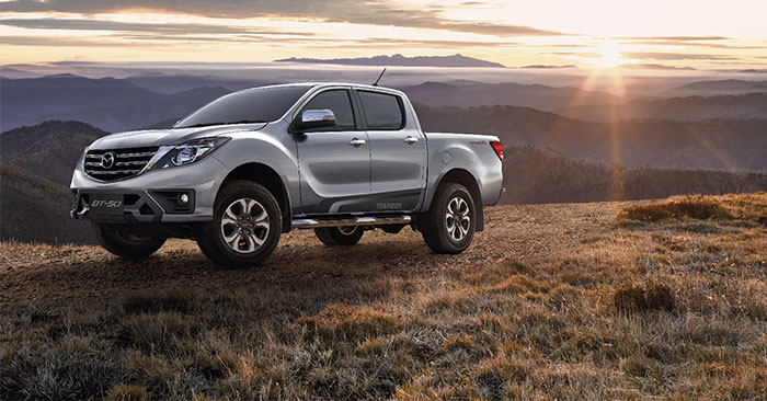 Mazda BT-50 PRO THUNDER 2018 รถกระบะรุ่นพิเศษ เพิ่มออปชั่นเพียบ ตกแต่งด้วยสติกเกอร์ลายกราฟิกด้านข้าง พร้อมดีไซน์กันชนหน้าใหม่ เพิ่มกระจังหน้าแบบโครเมียมดีไซน์ใหม่ ให้มุมมองความสปอร์ตและเพิ่มความหรูหรามากยิ่งขึ้น ทั้งฟรีสไตล์แคบ หรือบานแค็ปเปิดได้ FSC Hi-Race เกียร์ธรรมดา 6 สปีด และรุ่น 4 ประตู DBL Hi-Racer ทั้งแบบเกียร์ธรรมดา และเกียร์อัตโนมัติ 6 สปีด มาพร้อมเครื่องยนต์ 2.2 ลิตร ให้กำลังสูงสุด 150 แรงม้า มีให้เลือกทั้งหมด 4 สี ประกอบด้วย สีขาว คูลไวท์, สีเงิน อลูมิเนียม เมทัลลิค, สีดำ เจ็ทแบล็ก และสีขาวมุก สโนว์เฟลก ราคาเริ่มต้นที่ 701,000 บาท (FSC Hi-Race เกียร์ธรรมดา 6 สปีด)