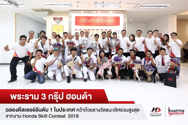 พระราม 3 กรุ๊ป ฮอนด้า ฉลองดีลเลอร์อันดับ 1 ในประเทศ คว้าถ้วยรางวัลชนะเลิศรวมสูงสุด จากงาน Honda Skill Contest 2018 โดยมี 4 ถ้วยรางวัลชนะเลิศ และรางวัลสำคัญต่างๆ รวม 22 รางวัล จากกิจกรรมการแข่งขันเพื่อเฟ้นหาสุดยอดพนักงานด้านการขาย, การบริการ และบริการหลังการขายจากโชว์รูมและศูนย์บริการฮอนด้า ซึ่งจัดขึ้นเป็นครั้งที่ 28 ภายใต้แนวคิด "แรงบันดาลใจสู่ความเป็นเลิศ Inspiring Excellence"